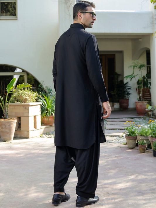 Black Blended Kameez Shalwar - ALWA-KS-307