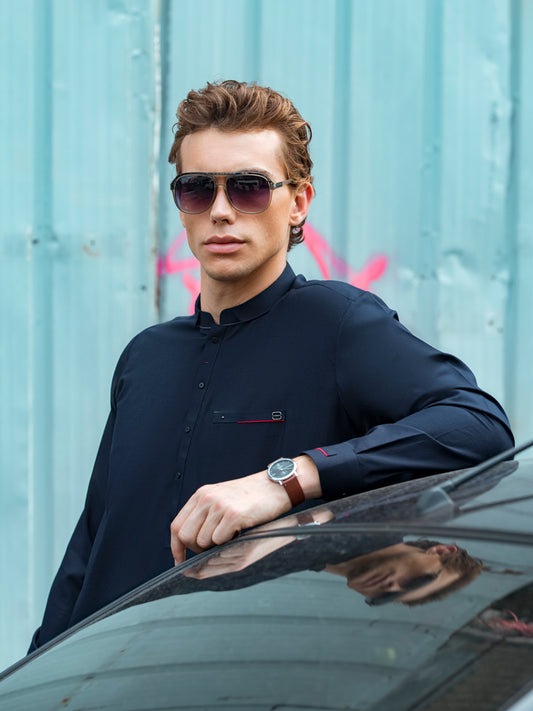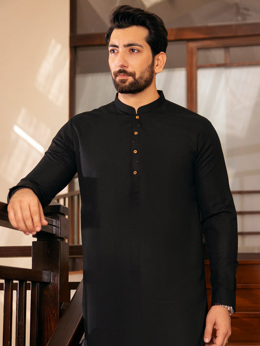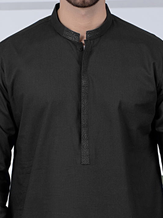 Black Cotton Kurta - AL-K-1022