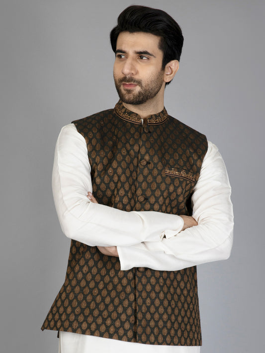 Black Brocade Waistcoat - AL-WC-412