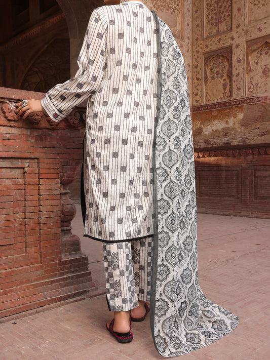Black & White Cambric Stitched 3Pc - AWP-3PS-503