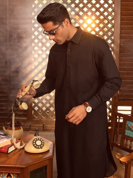 Black Blended Kameez Shalwar - ALWA-KS-477