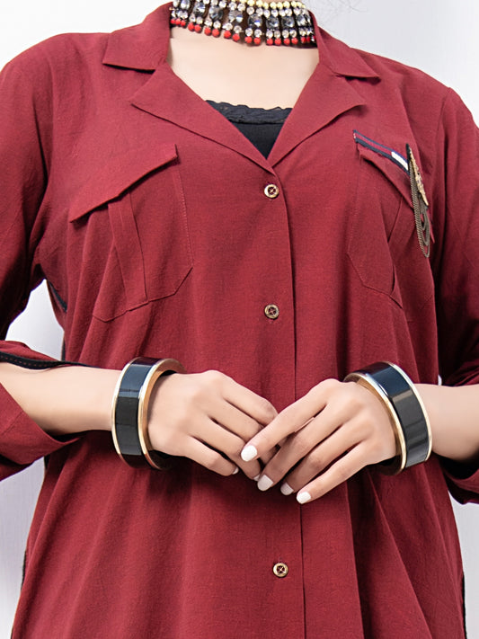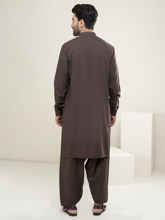 Dark Brown Cotton Kameez Shalwar - ALWA-KS-480