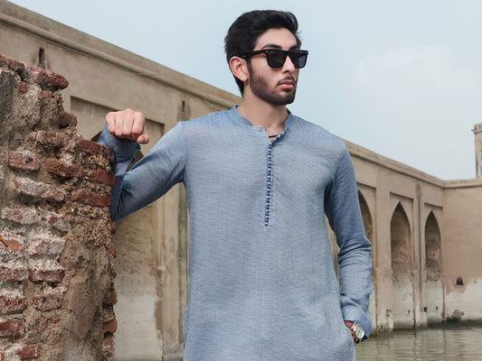 Light Grey Blended Kameez Shalwar - ALWA-KS-508