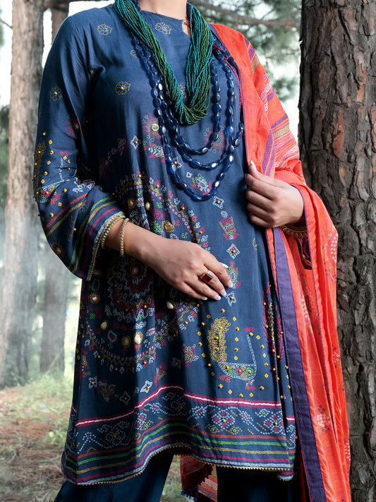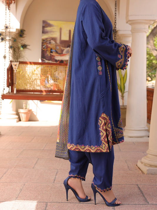 Blue Slub Viscose 3Pc Stitched - AWP-3PS-438