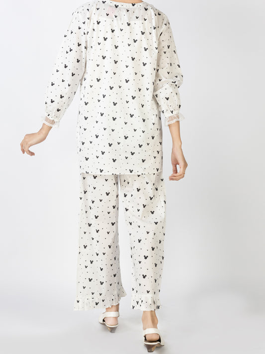 Black & White Cotton 2 Piece Stitched Nightwear - ALT-LKS-NW-1006