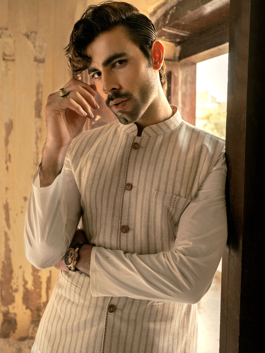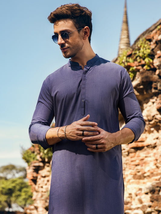 Light Grey Blended Kameez Shalwar - ALWA-KS-305