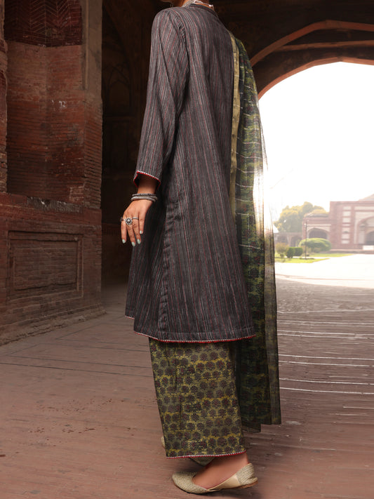 Black Karandi 3Pc Unstitched - AWP-3PS-356