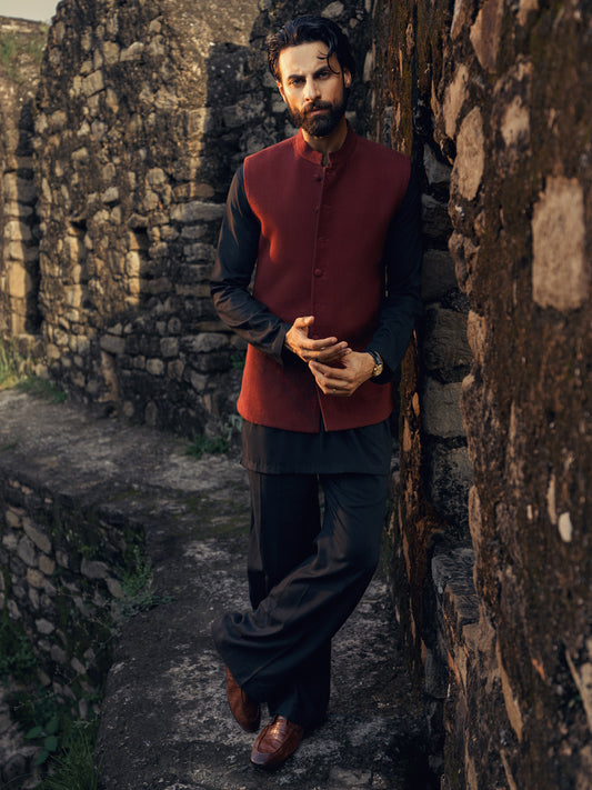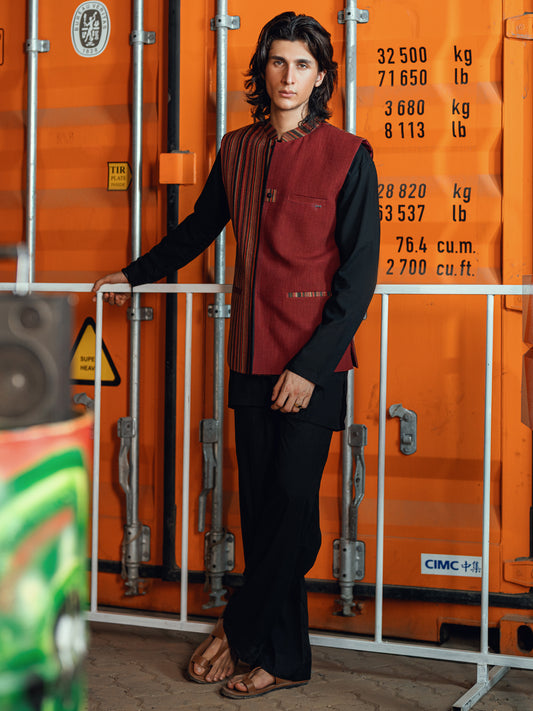 Black Maroon Formal Waistcoat - AL-WC-473
