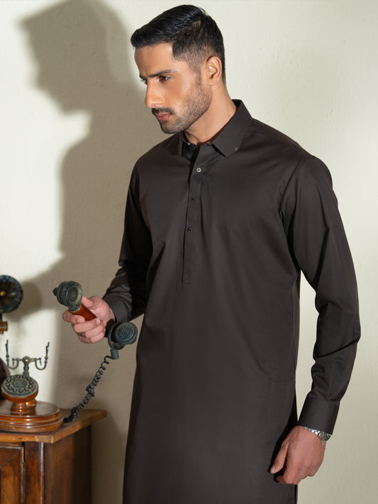 Dark Brown Kameez Shalwar - ALWA-KS-594