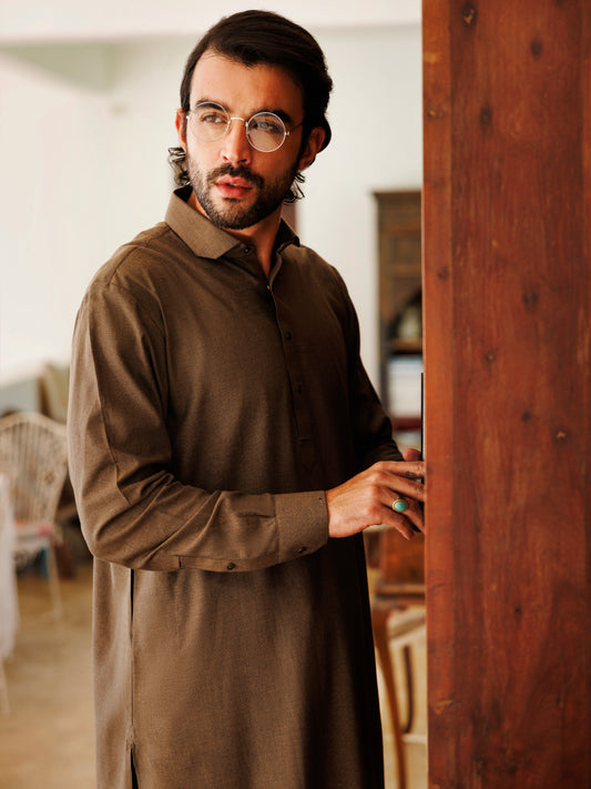 Olive Green Blended Kameez Shalwar - ALWA-KS-501