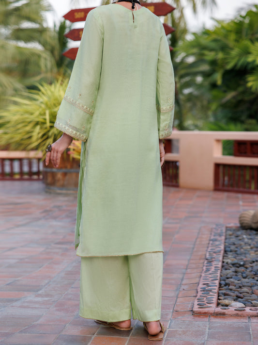 Light Green Khaddi Net Tunic - AL-LK-1038