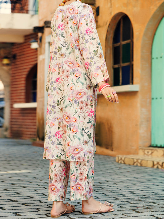 Cream Lawn Co-ord Set - ALP-2PS-SLKS-2069