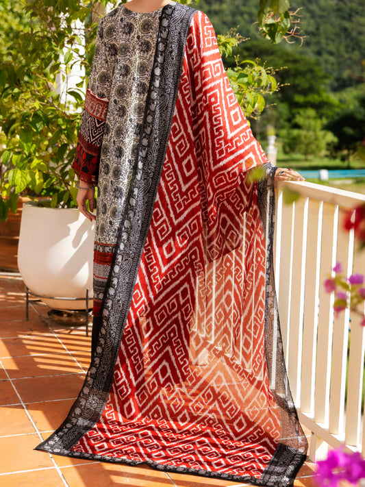 Black Lawn 3Pc Stitched - ALP-3PS-1995