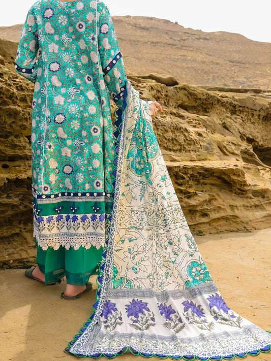 Teal Lawn 2Pc Unstitched - ALP-2PS-SLKD-UN-2257