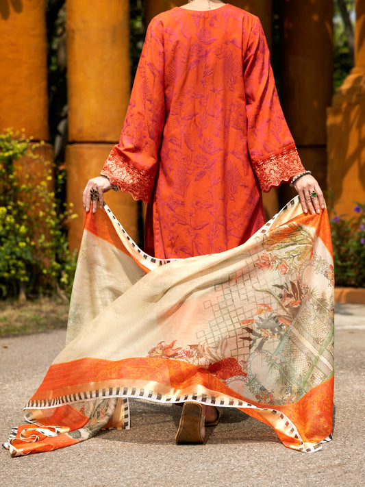 Orange Jacquard 3Pc Unstitched - ALP-3PS-2014