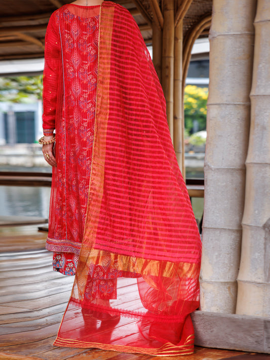 Red Maple Silk 3Pc Unstitched - ALP-3PS-2025