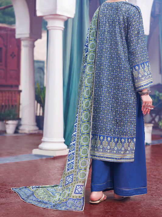 Blue Cambric 3Pc Unstitched - AWP-3PS-738B