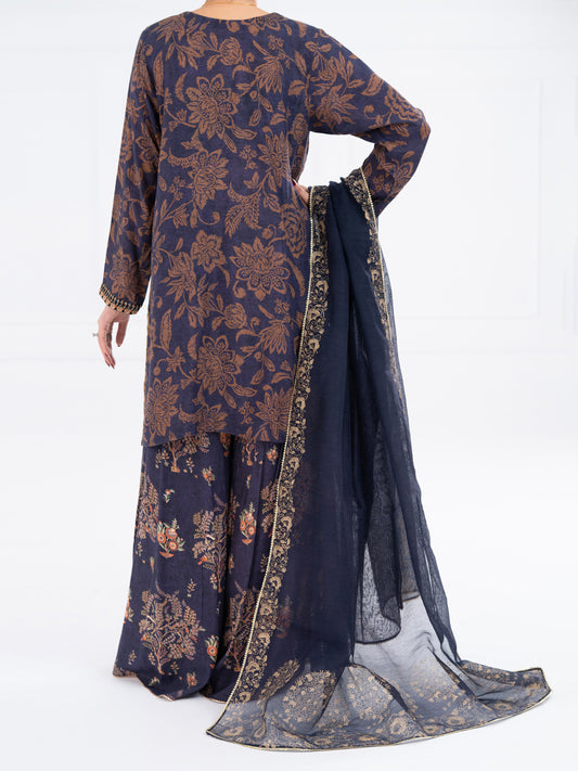 Navy Blue Poly-Raw Silk 3Pc Stitched - AWP-3PS-755