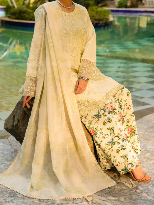 Off White Golden Lurex 3Pc Unstitched - ALP-3PS-2452