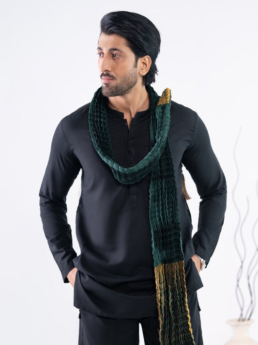 Black Cotton Kameez Shalwar - ALWA-KS-600