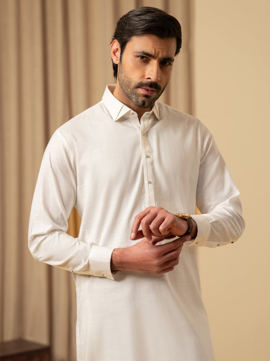 White Cotton Kameez Shalwar - ALWA-KS-584