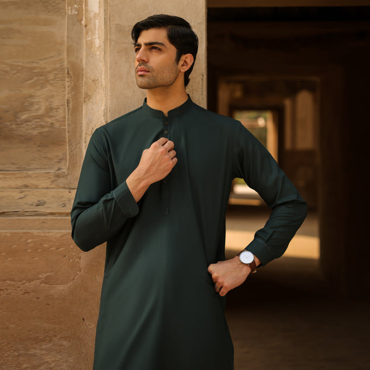 Olive Green Cotton Kameez Shalwar - ALWA-KS-598