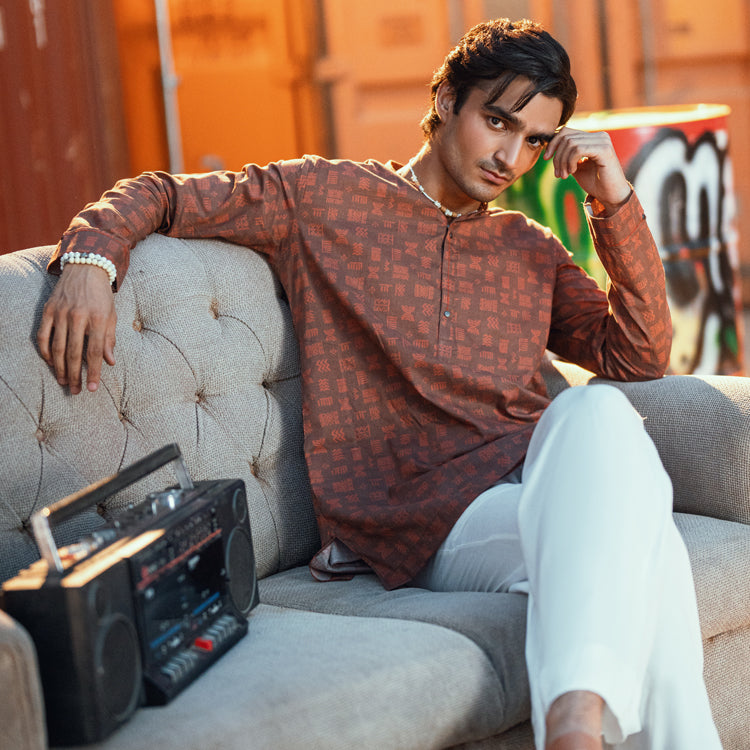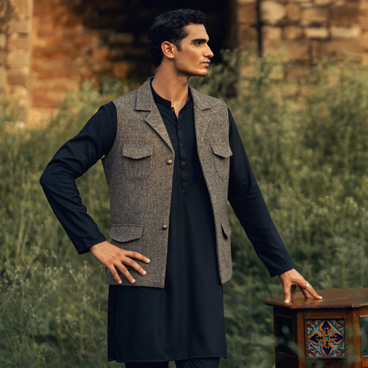 Dark Brown Cotton-Linen Kameez Shalwar - AL-KS-3186