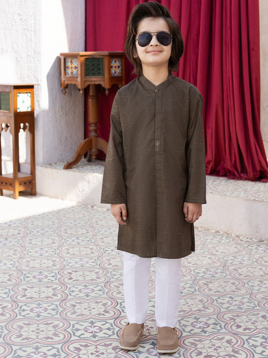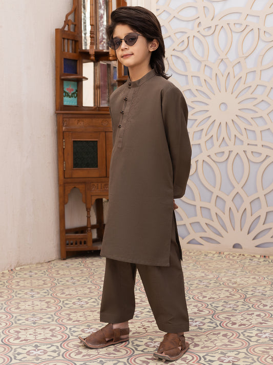 Dark Brown Cotton Kameez Shalwar - ALBY-KS-005