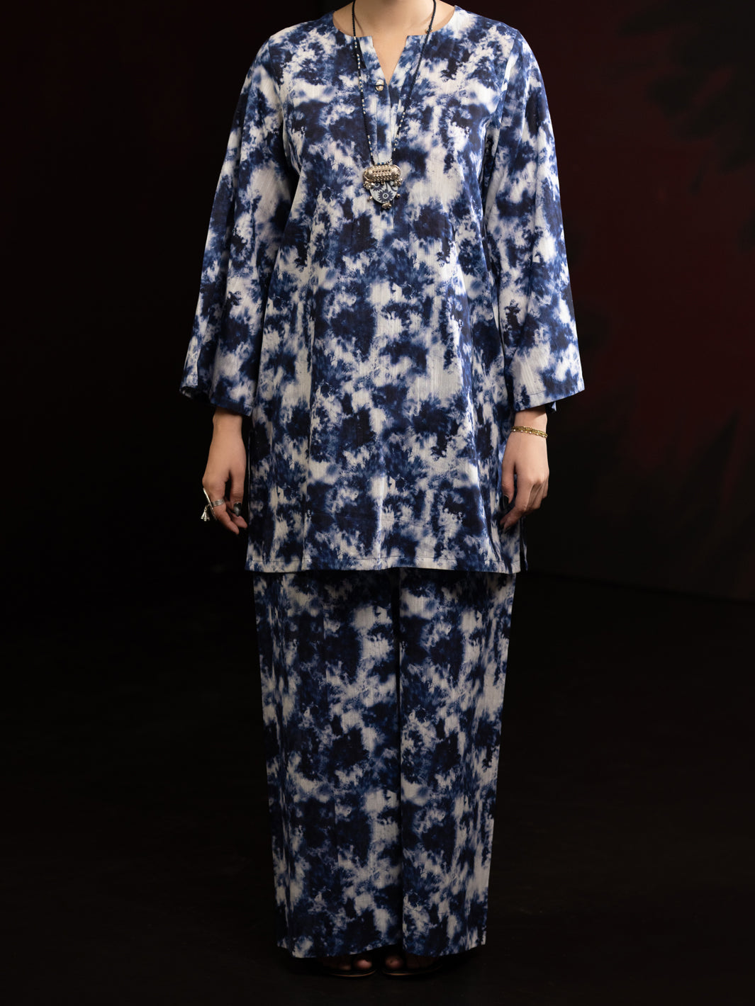 Blue Slub Khaddar 2Pc Stitched - AL-2PS-LKS-1092