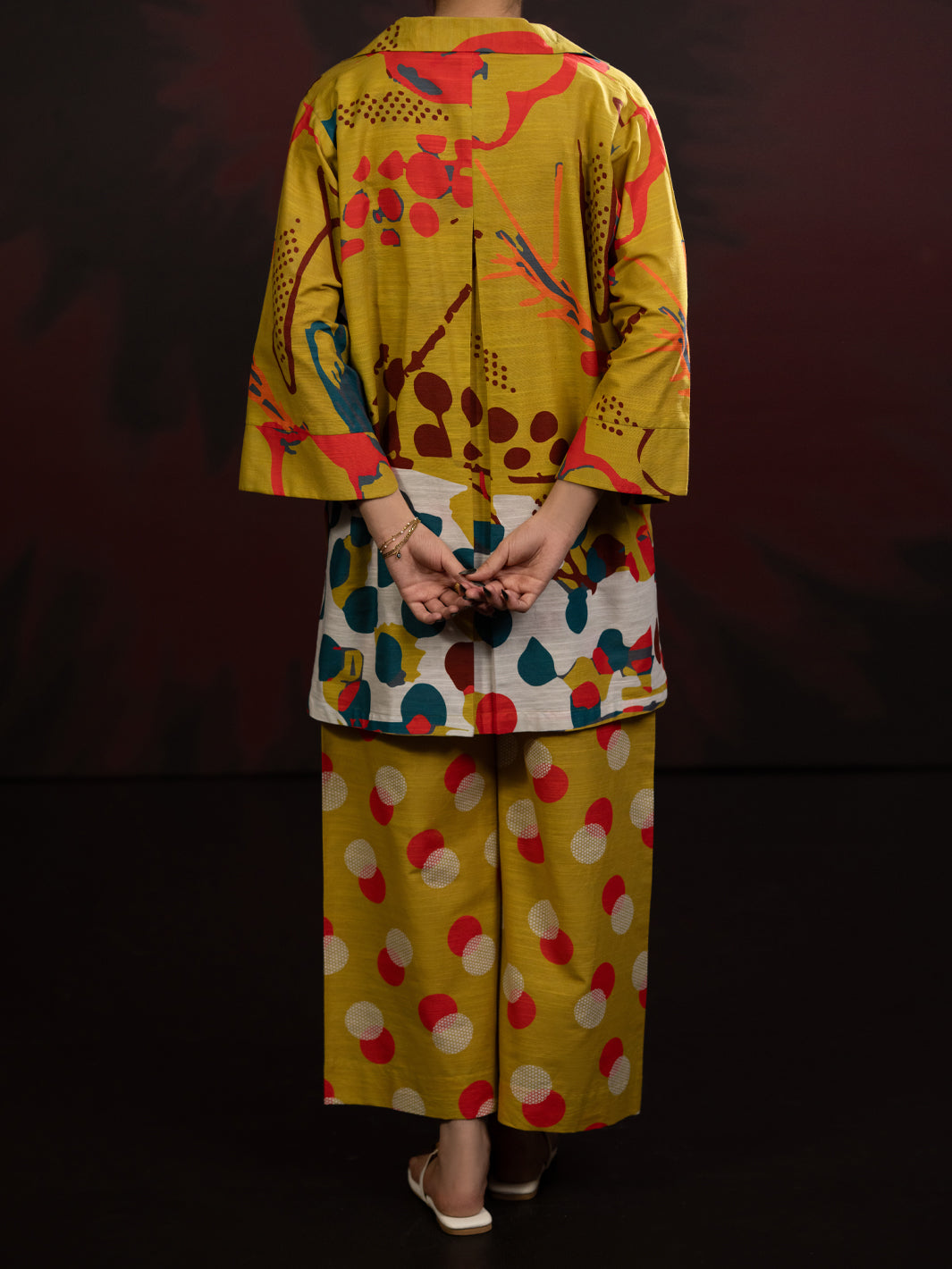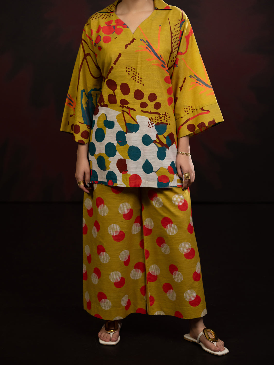 Printed Light Khaddar Mid Length Straight Shirt With Loose Light Khaddar Printed Culottes