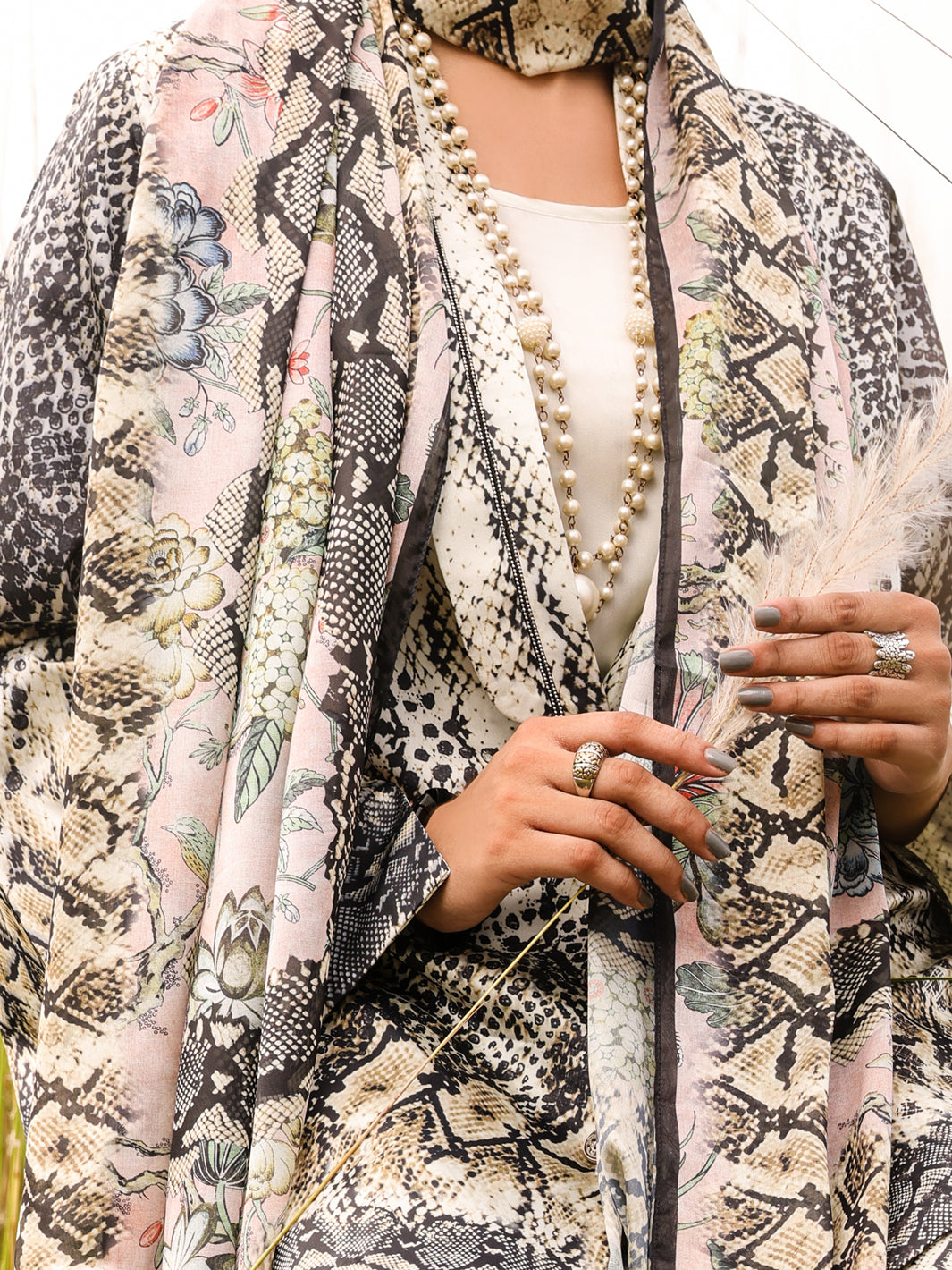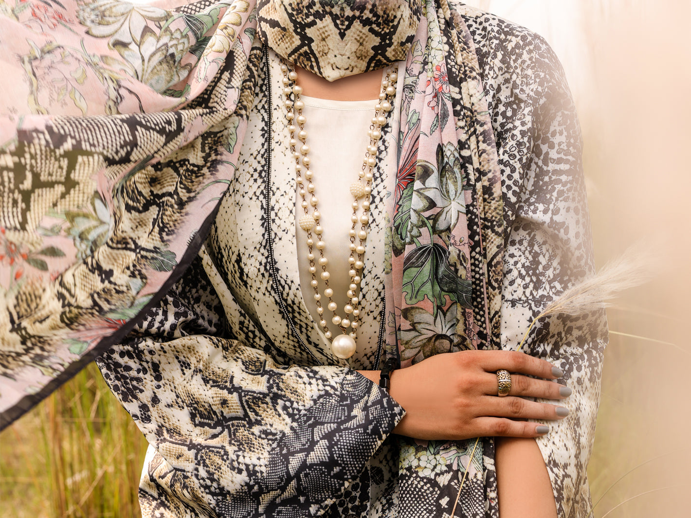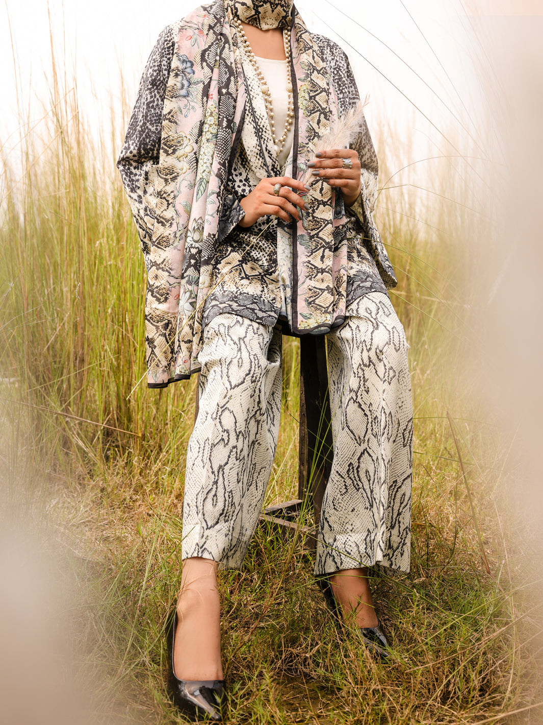 Black & White Silk 3Pc Formal Stitched - AL-3PS-LS-381