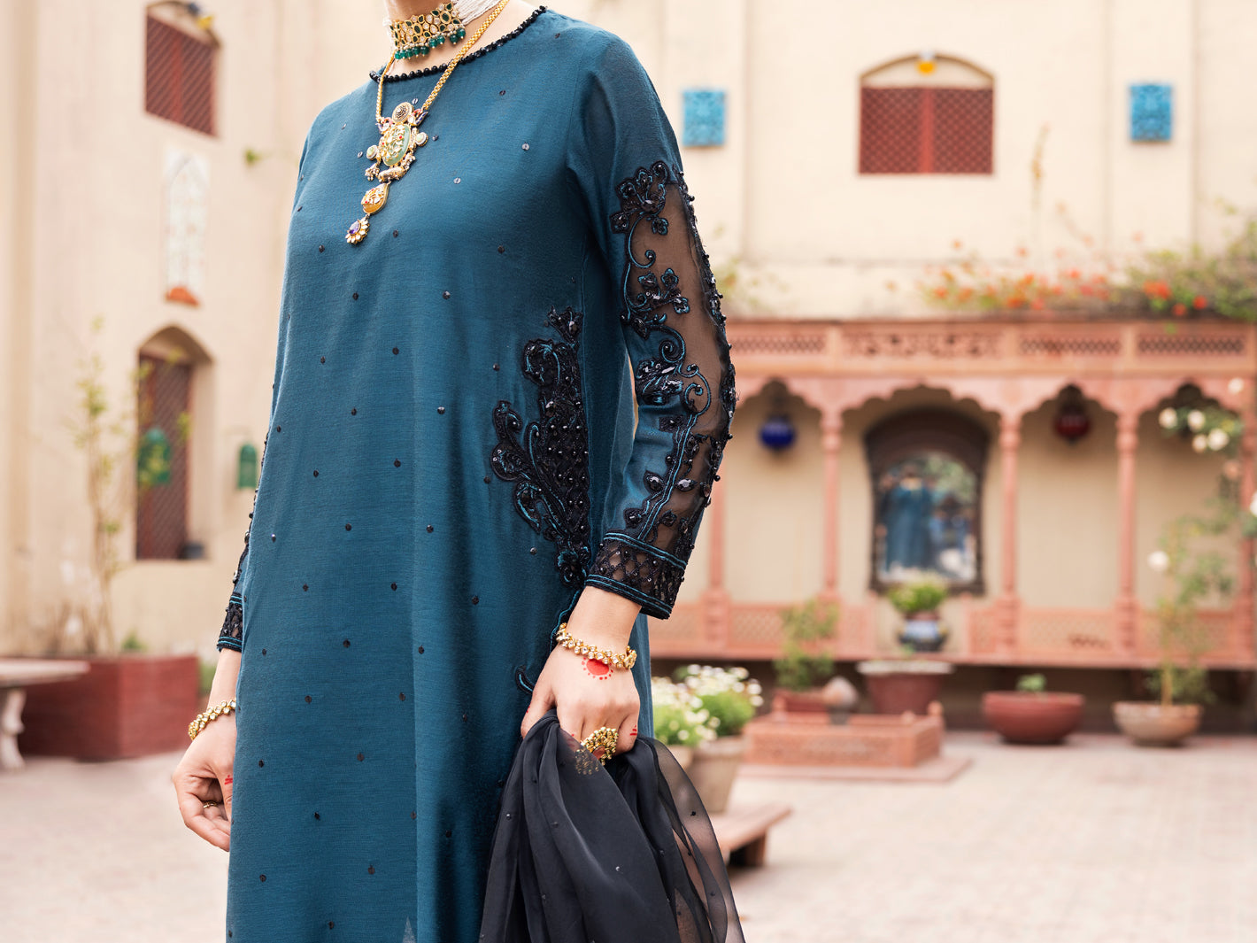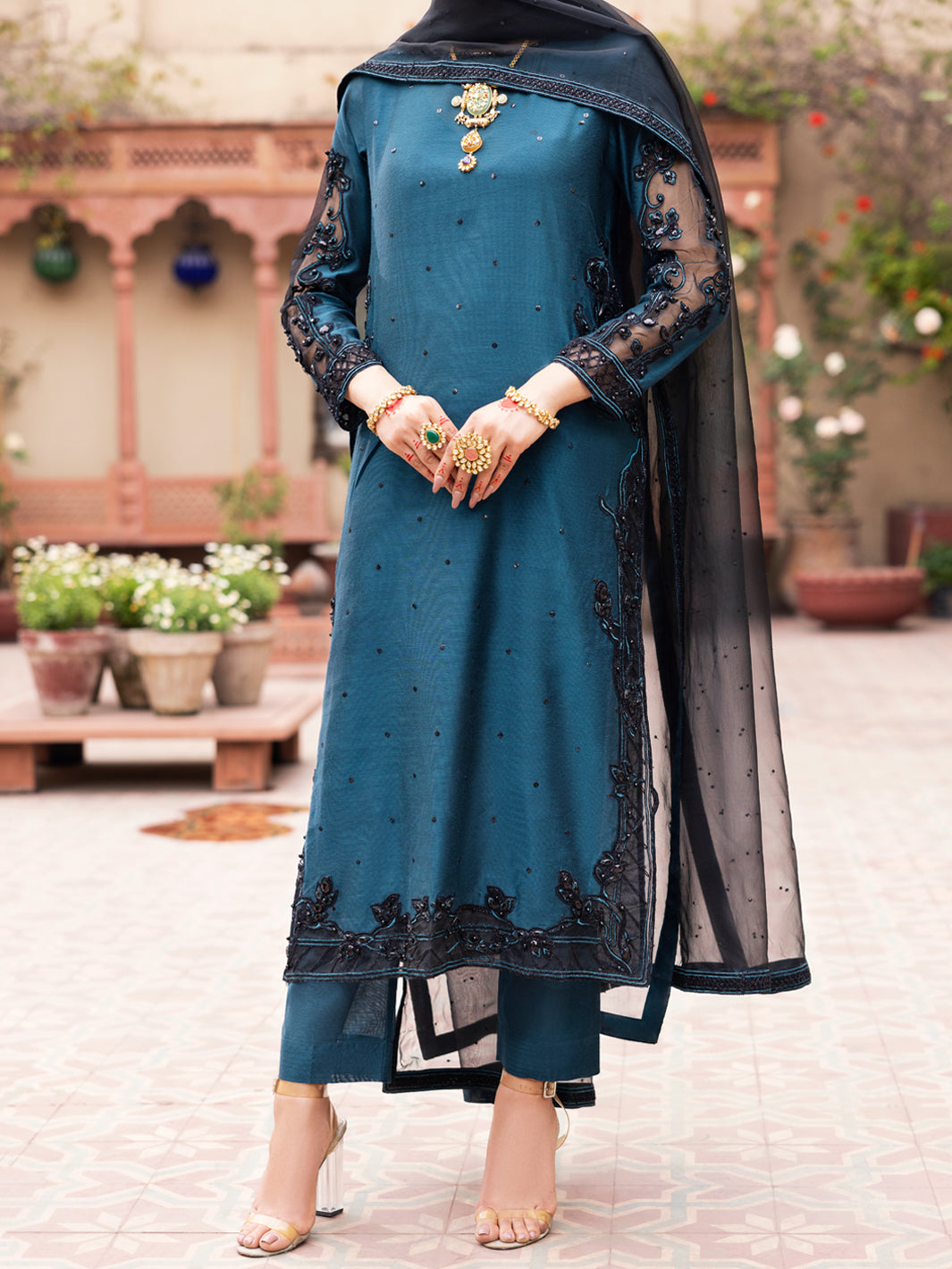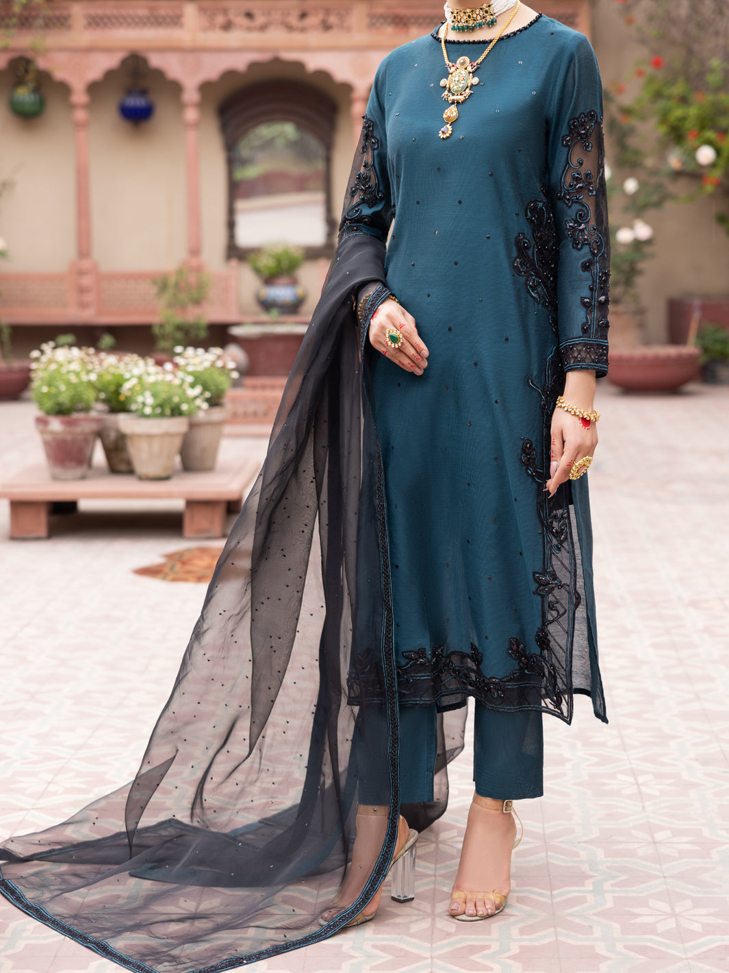 Teal Green Raw Silk 3Pc Formal Stitched - AL-3PS-LS-470