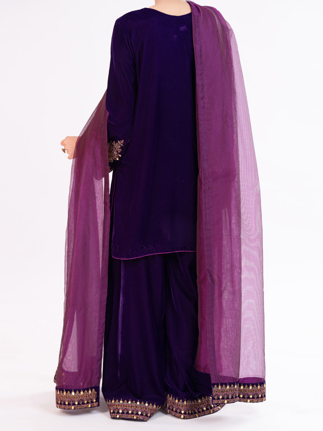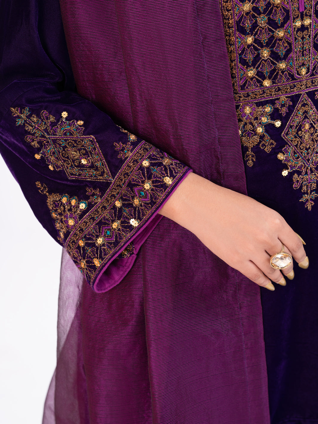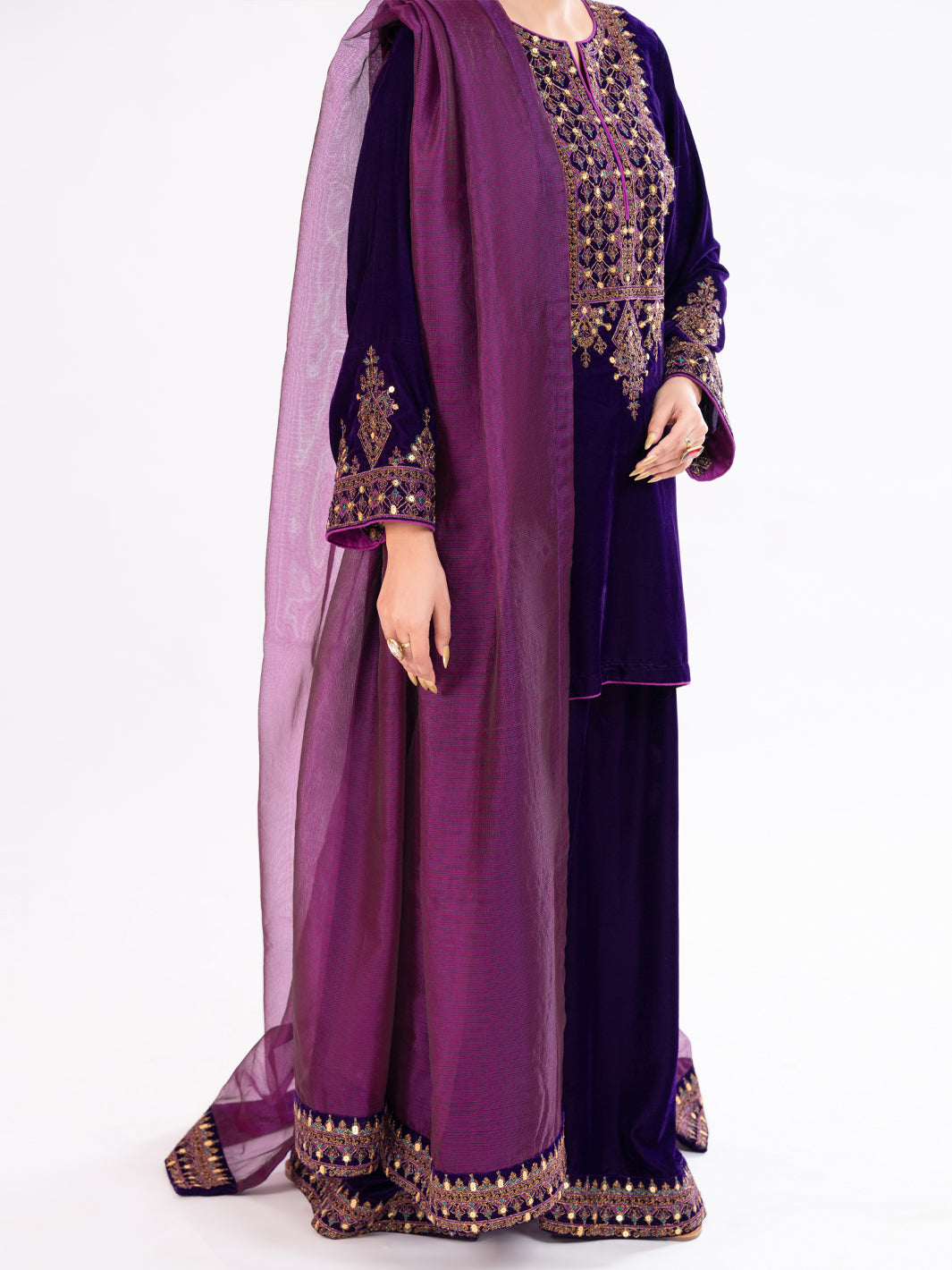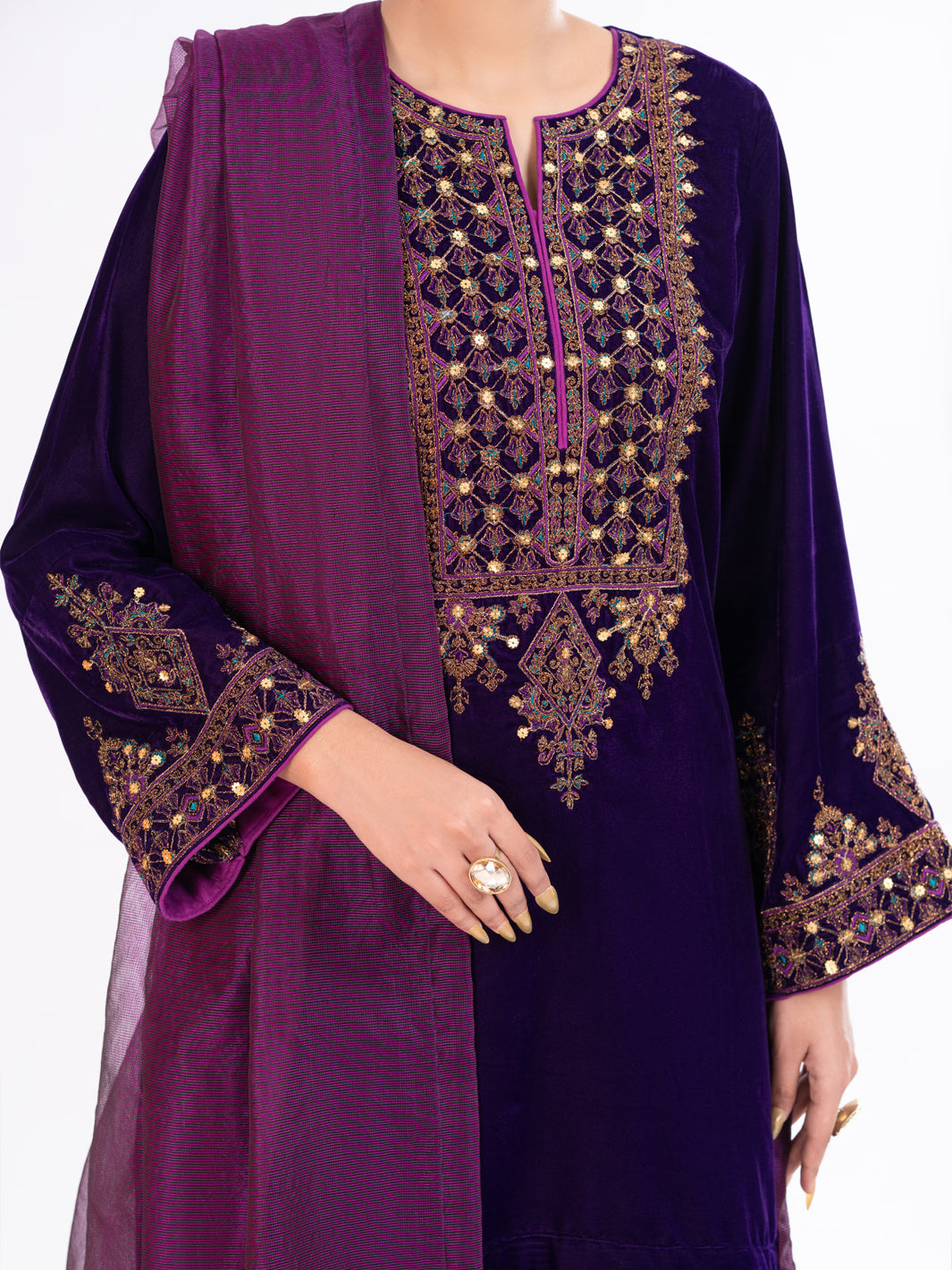 Purple Velvet Formal 3Pc Stitched - AL-3PS-LS-561