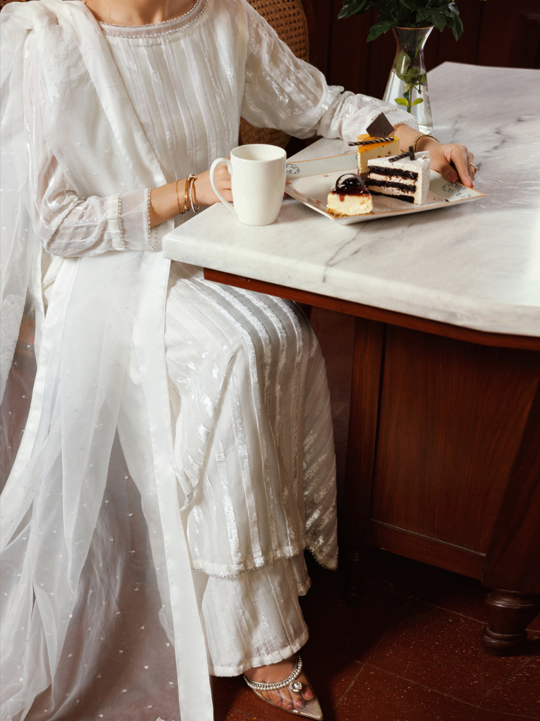 White Palachi Velvet Formal 3Pc Stitched - AL-3PS-LS-563