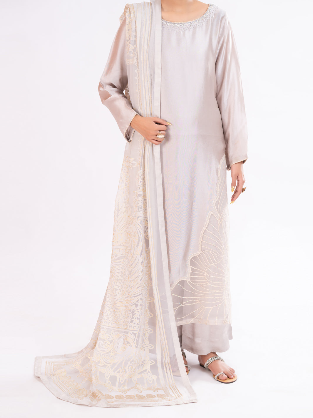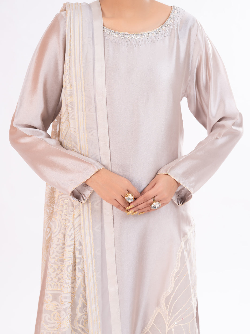 Beige Sheesha Silk Formal 3Pc Stitched - AL-3PS-LS-580