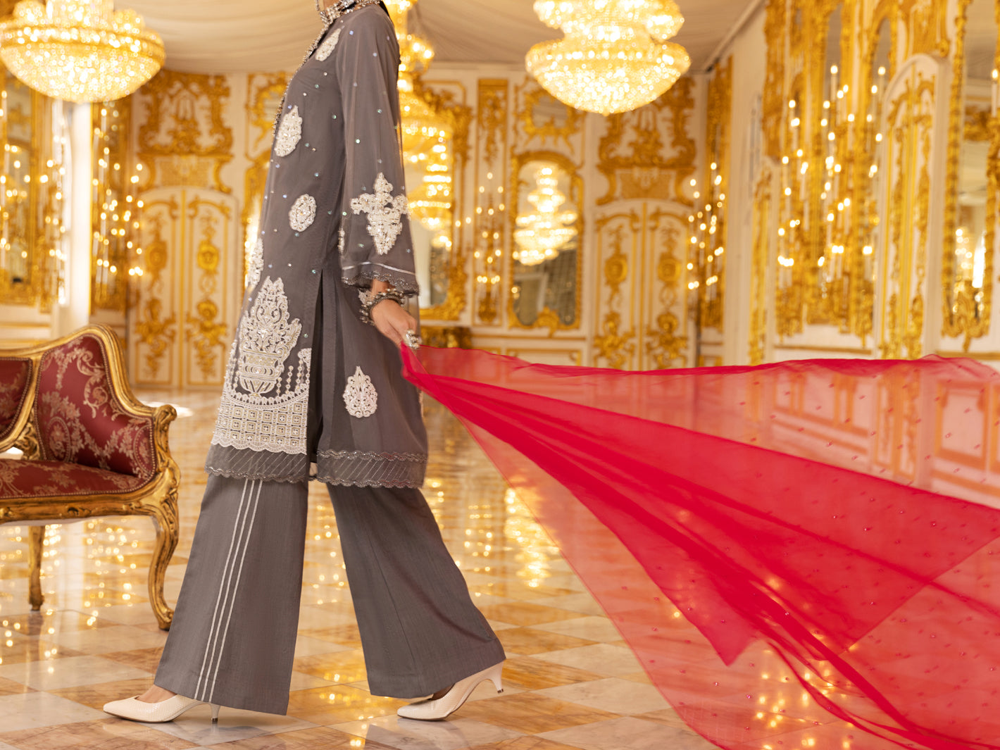 Grey 3Pc Shimmer Net Formal Unstitched - AL-3PS-LS-UN-359