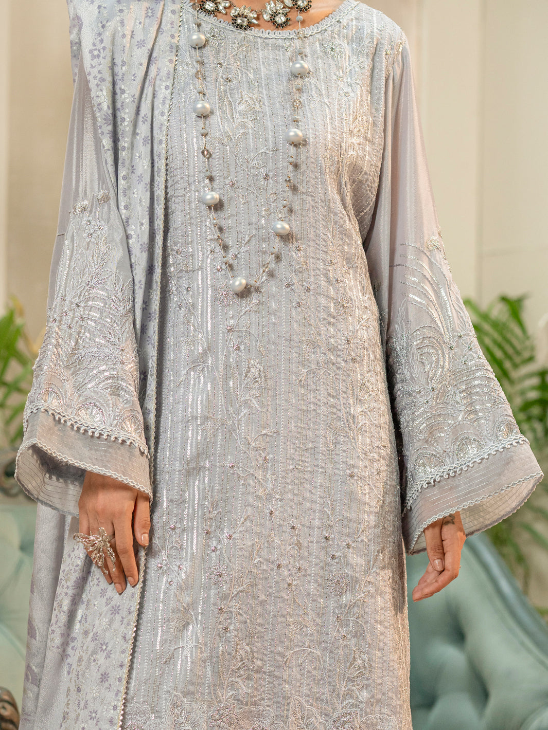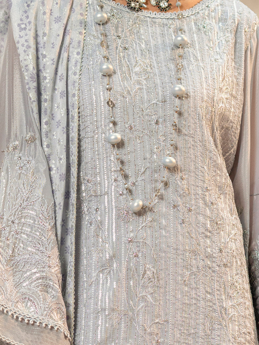 Chiffon Silk Sleeves With Embroidery: 0.60 Meter