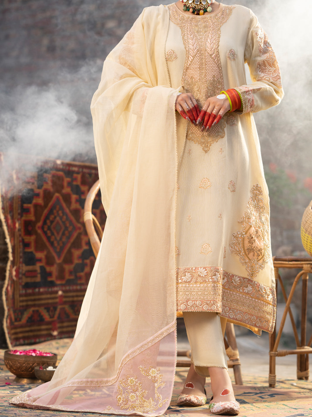 Khaddi Stripe Shirt With Embroidery: 2.1 Meters