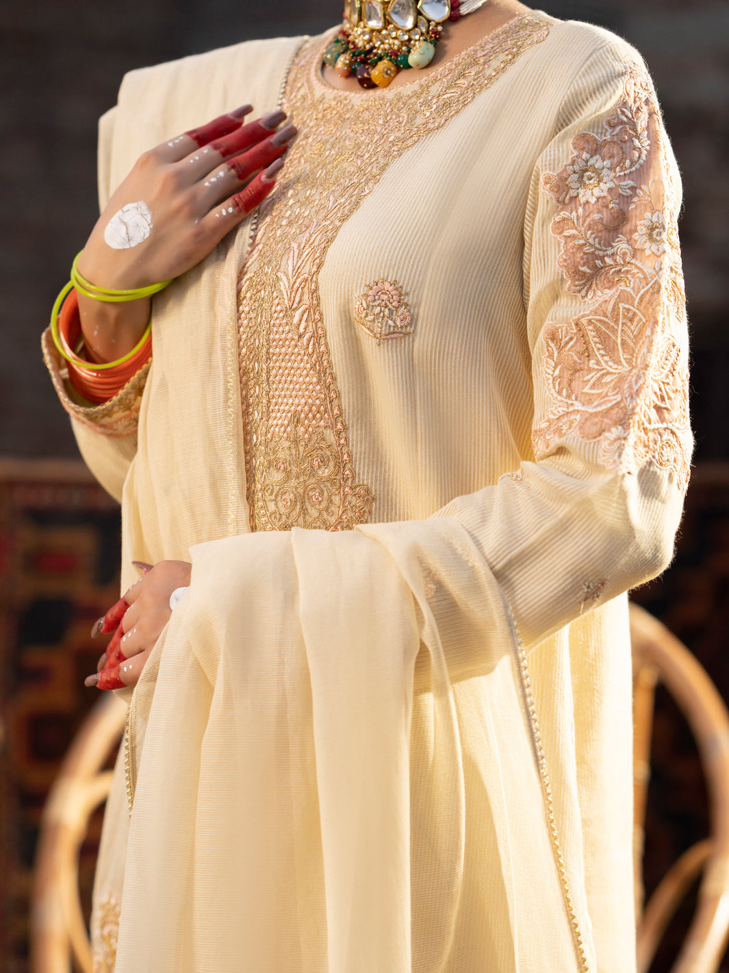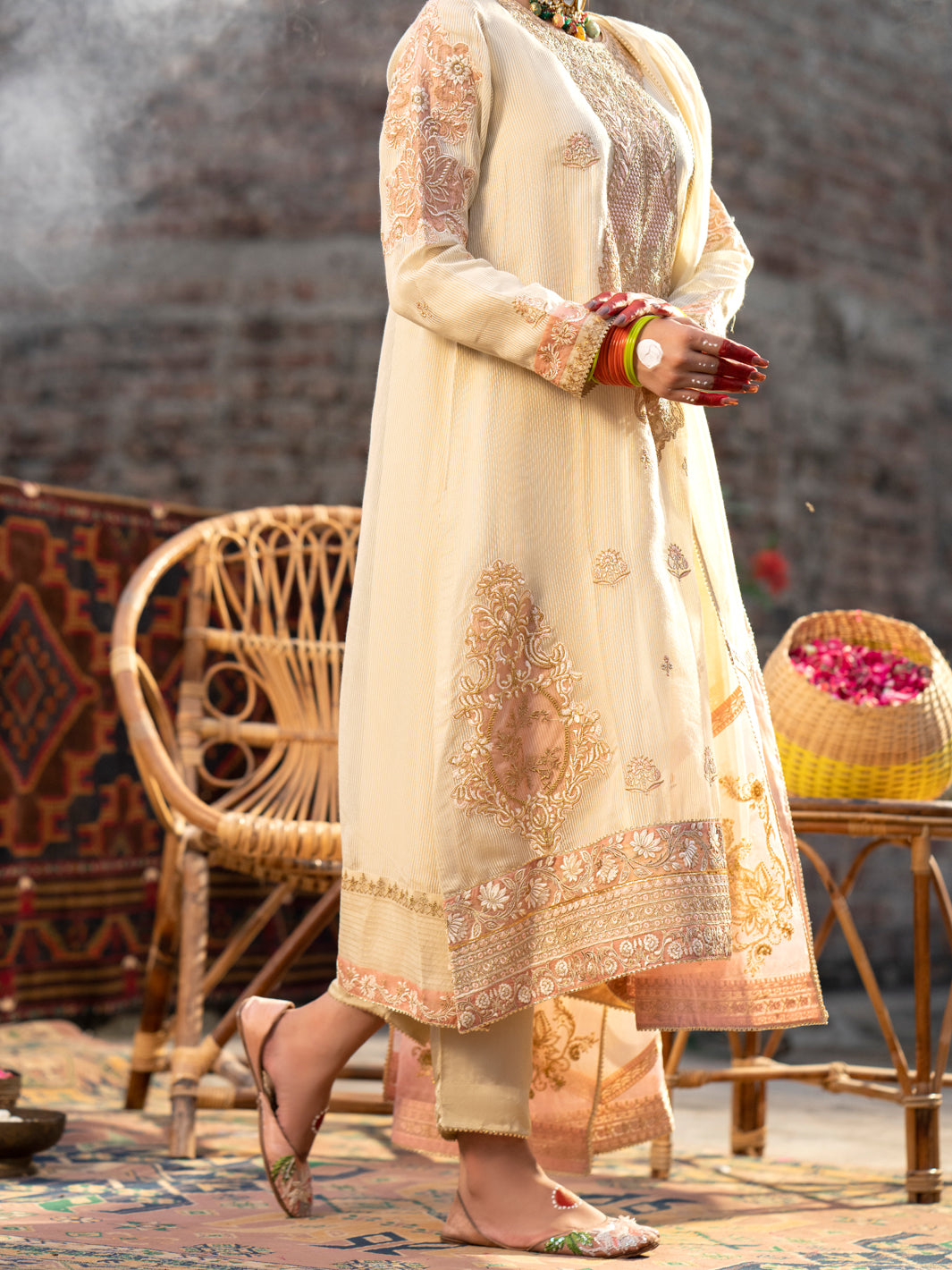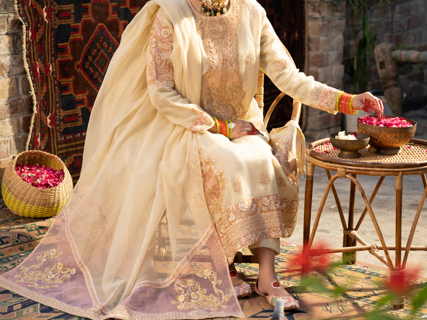 Front Daman Embroidered Border (Off White): 0.85Â Meter