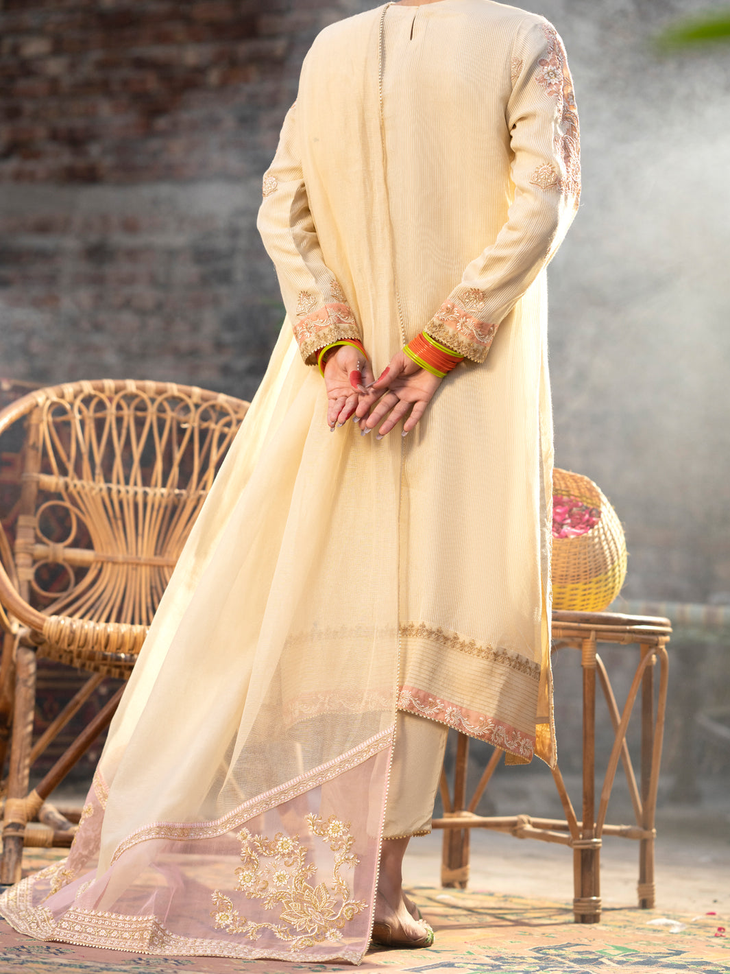 Shirt Back &Â Sleeve Embroidered Border (Off White): 1.55 Meter