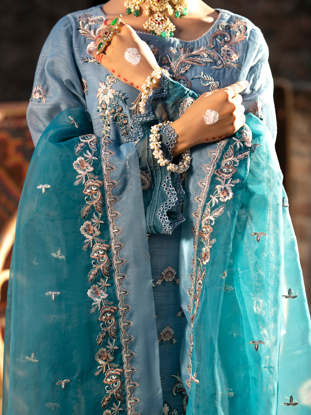 Sky Blue Khaddi Stripe 3Pc Formal Unstitched - AL-3PS-LS-UN-451