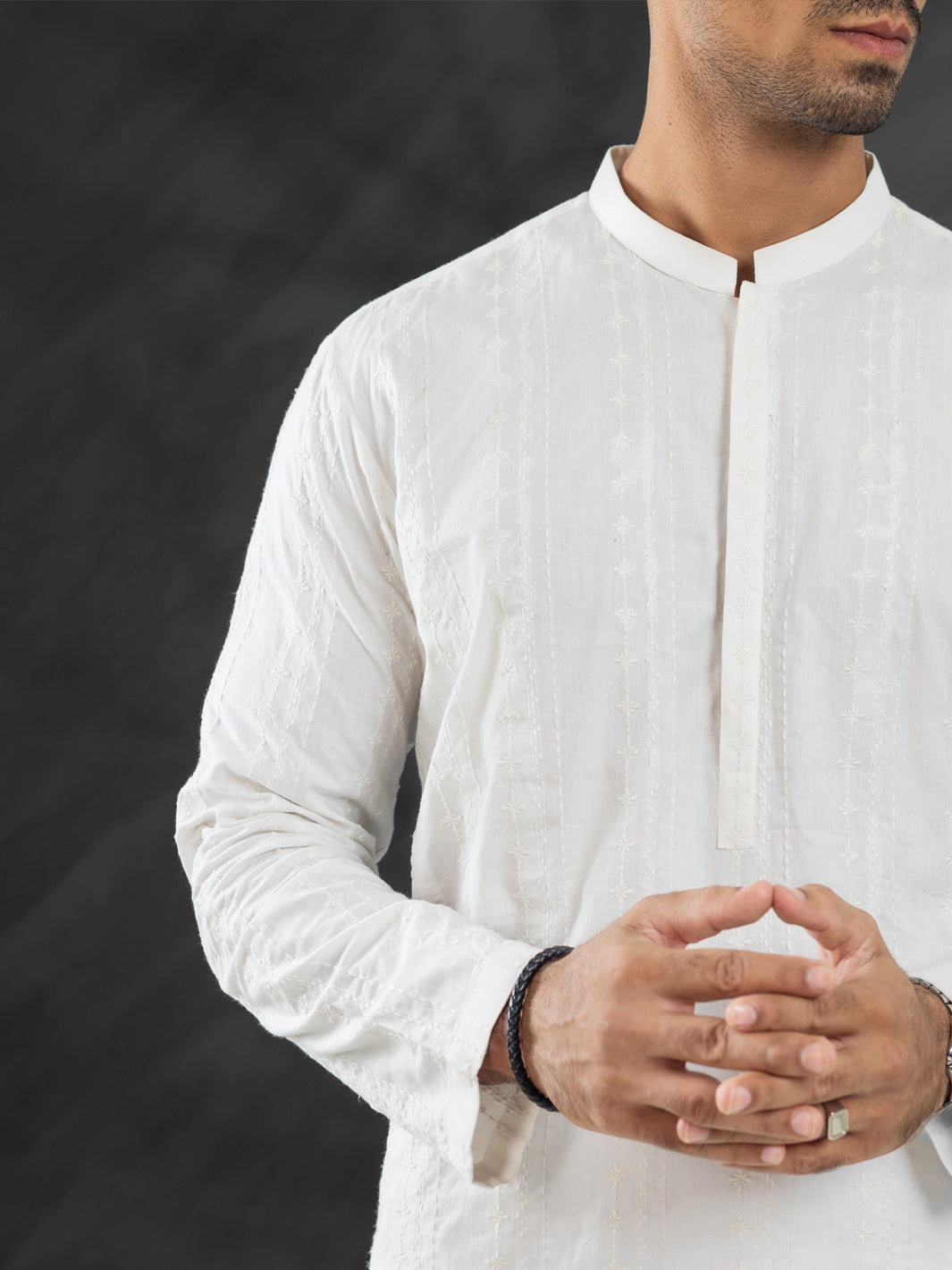Fully Embroidered Semi-Formal Kurta Made From 100% Cotton For Comfort and Style.