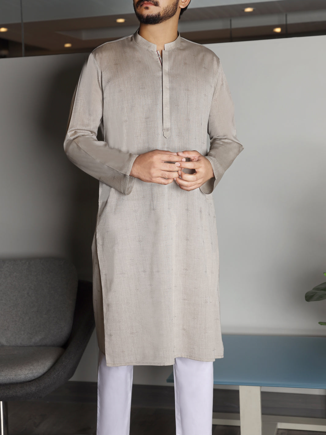 Light Gray Cotton Kurta - AL-K-812