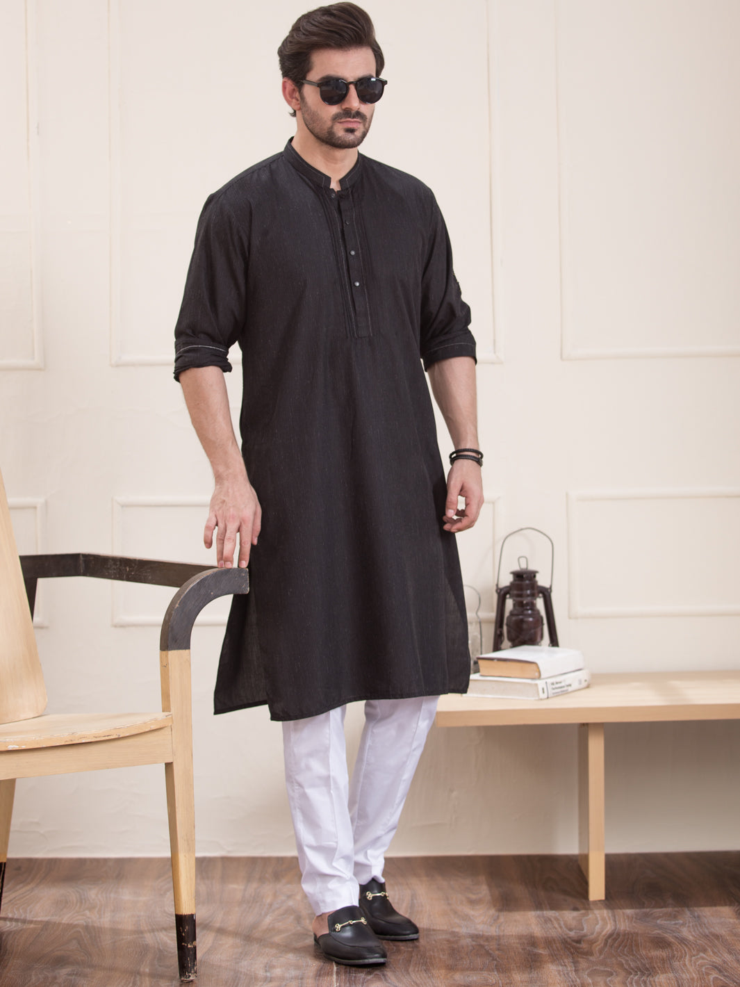 Semi-Formal Kurta With Sleeve Motif Embroidery And Pintuck Detail