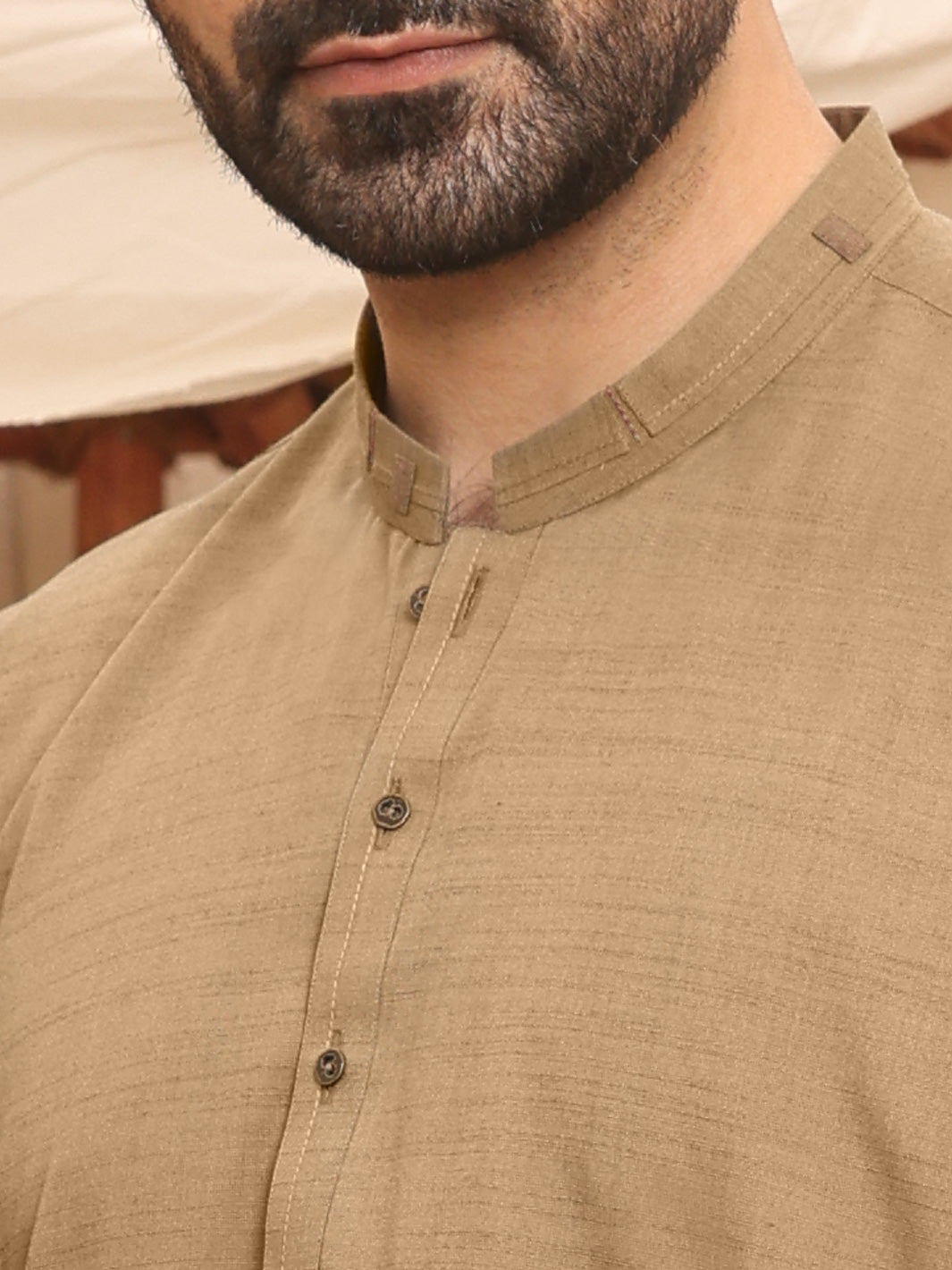 Cut And Sew Kameez Shalwar With Cuts And Sew Details On Collar Placket And Cuffs.