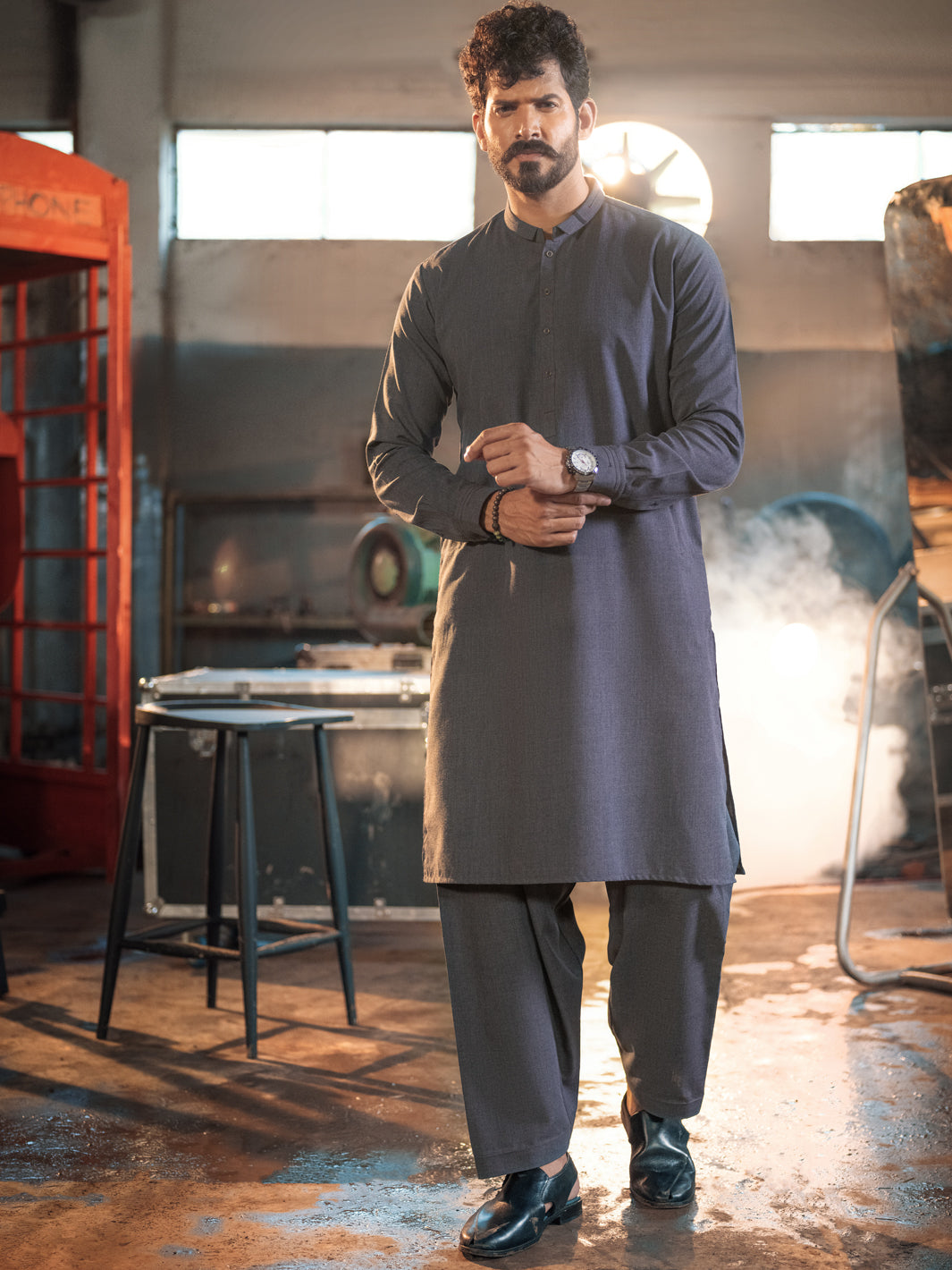 Charcoal Grey Blended Kurta Shalwar - AL-KS-2650