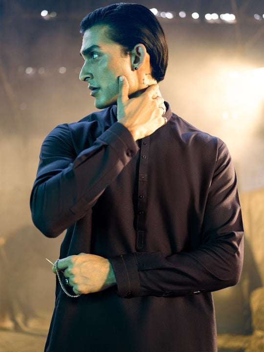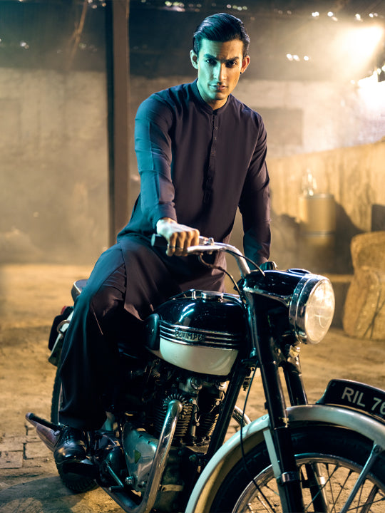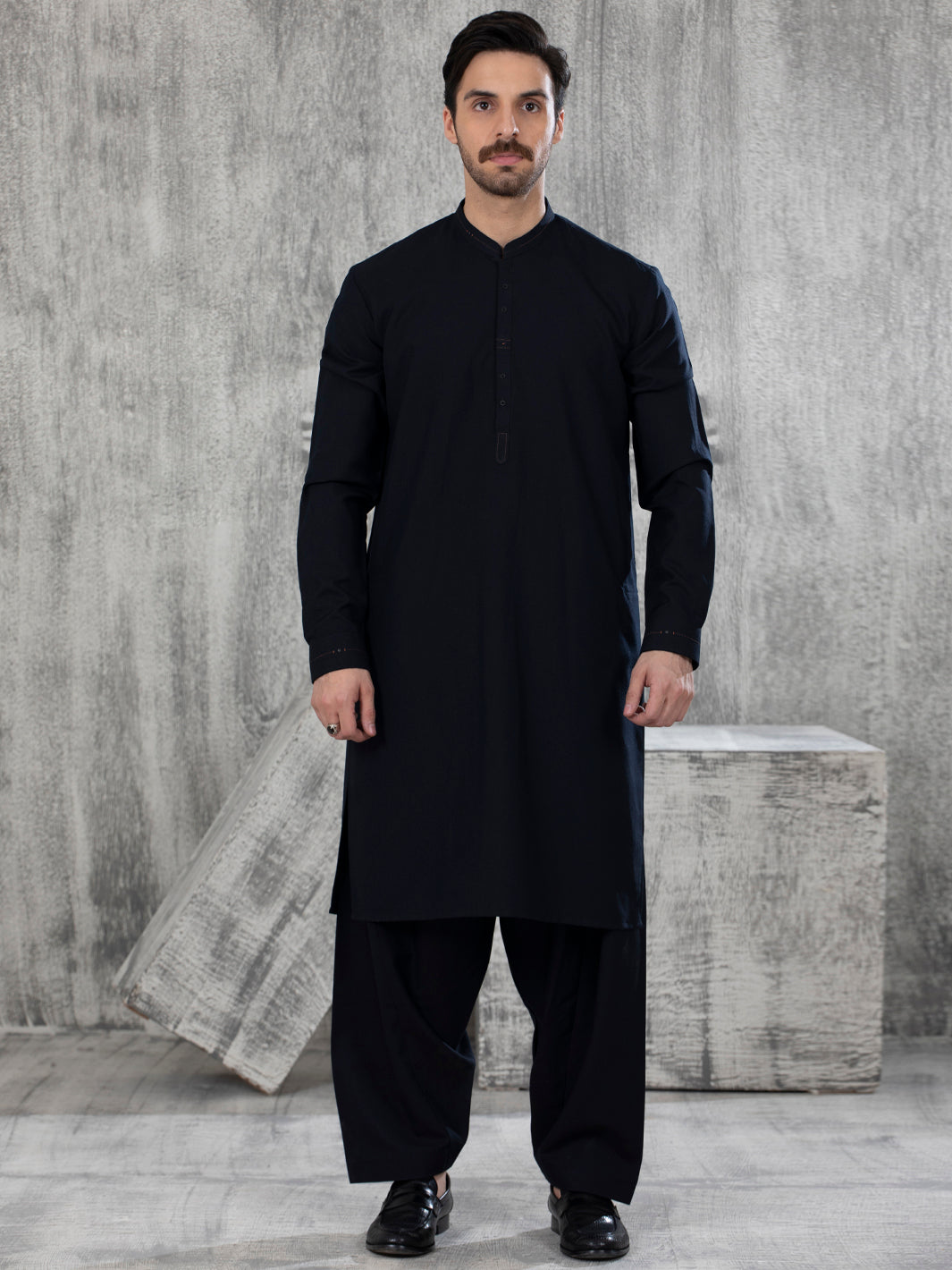 Midnight Blue Blended Kameez Shalwar - AL-KS-2842