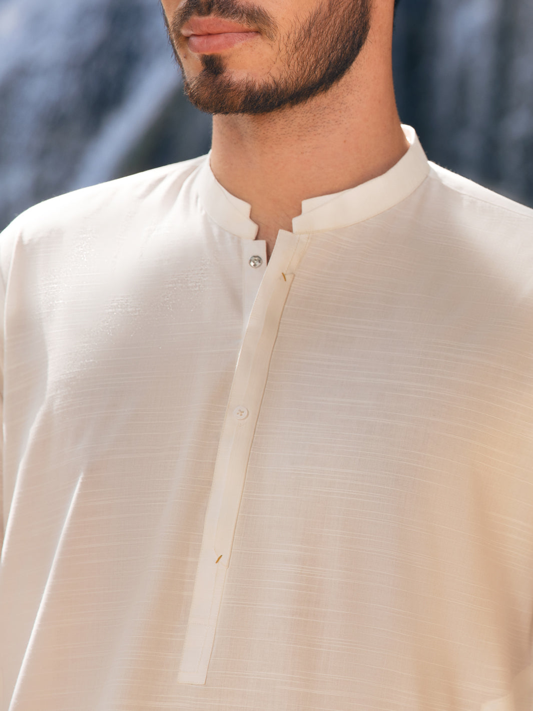 White Kameez Shalwar With Styled Invisible Placket And Collar And White Button Detail