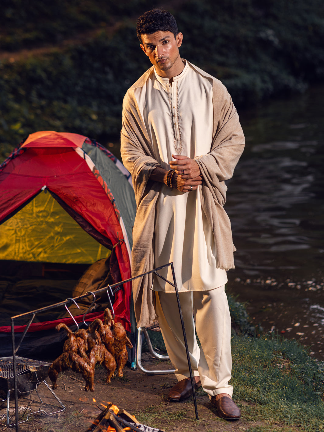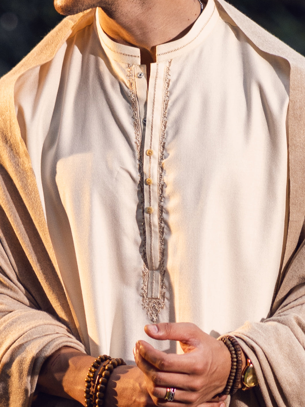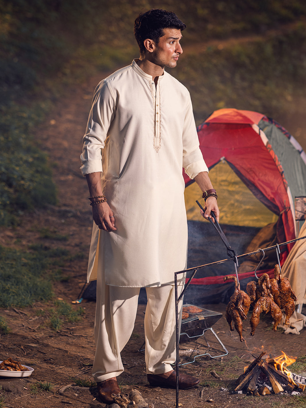 Semi-Formal Kameez Shalwar With Embroidery Around Placket And Collar