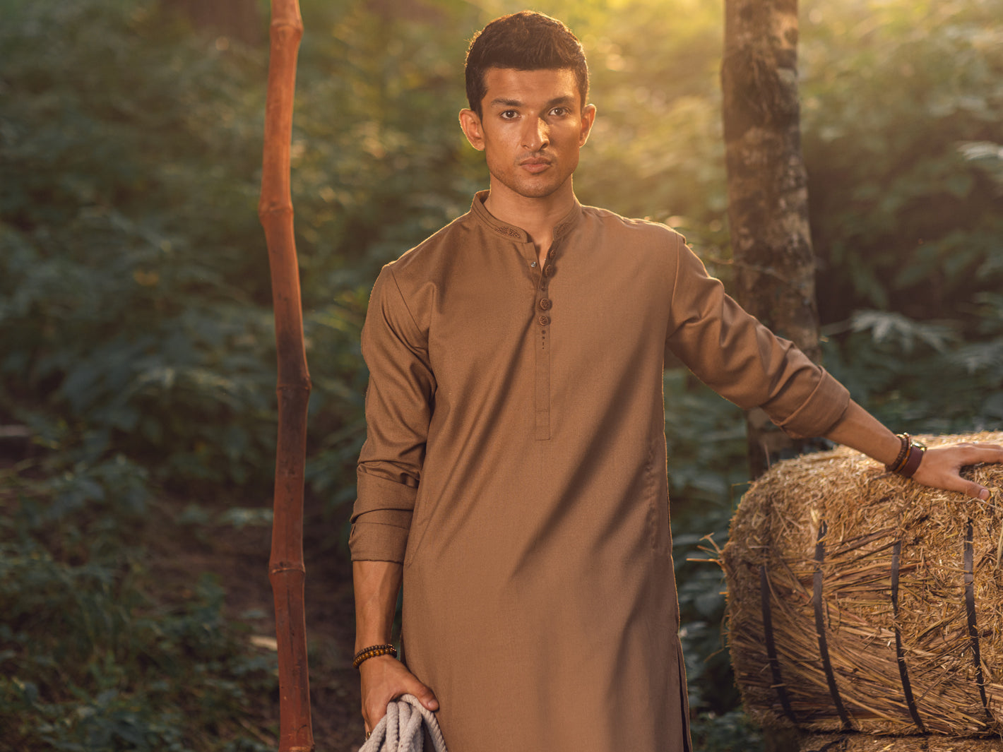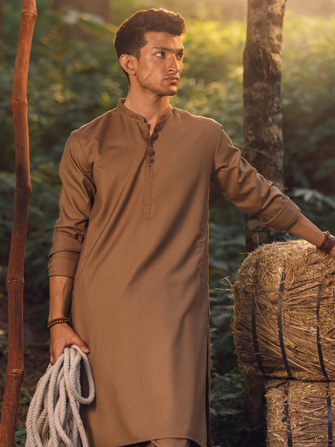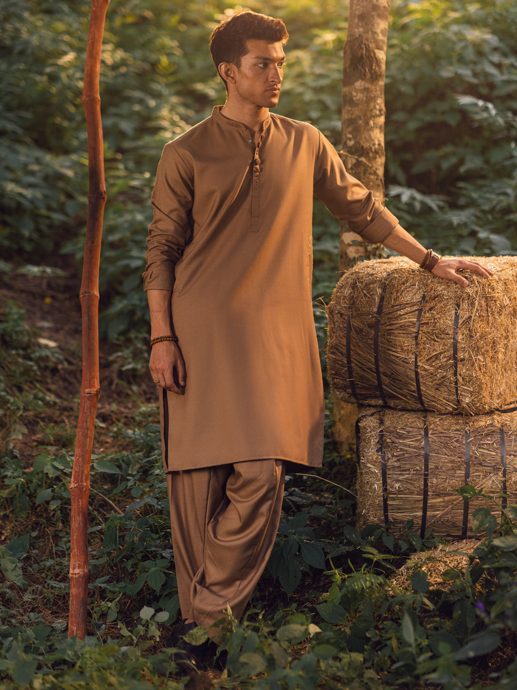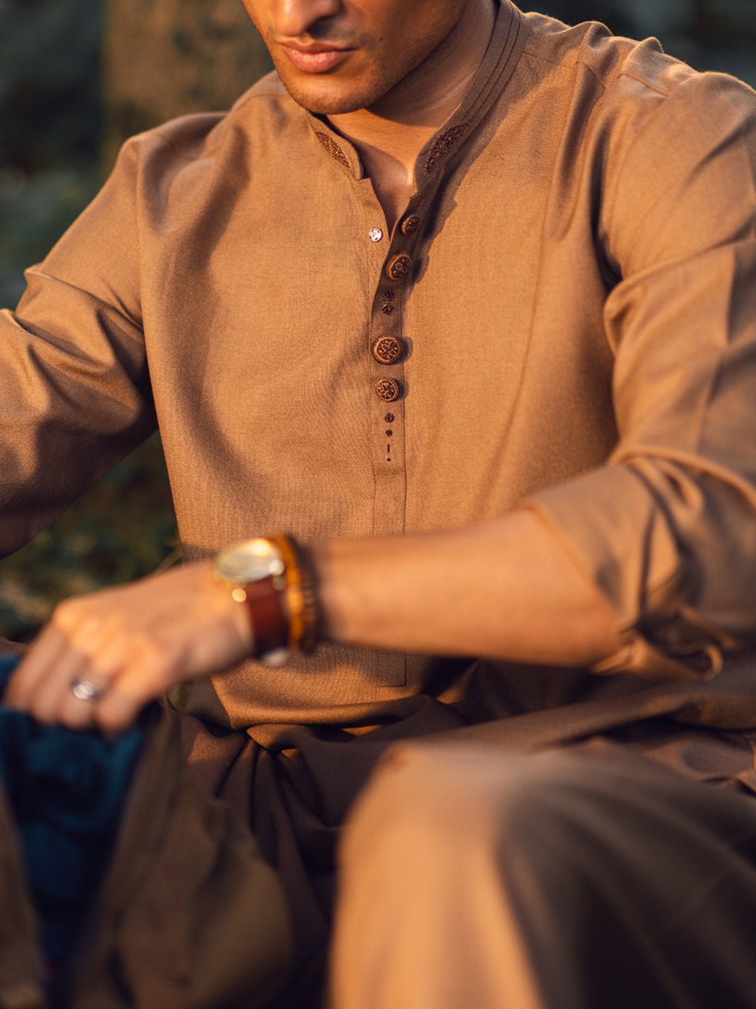 Semi-Formal Kameez Shalwar With Embellished Buttons, Embroidery Details On Placket And Collar